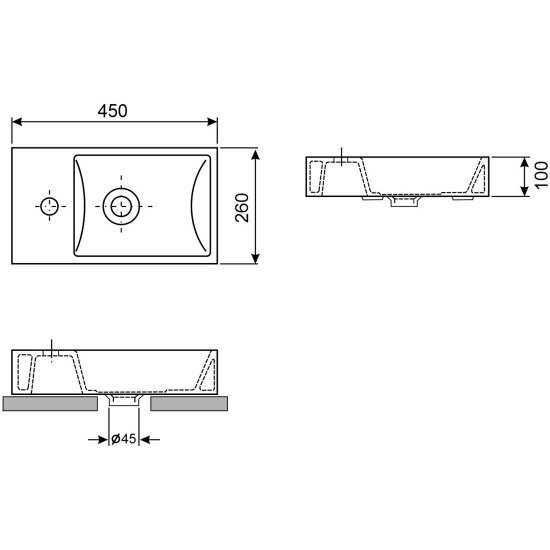 Подвесная раковина для ванной Wellsee WC Area 151803000: прямоугольная, ширина умывальника 45 см, цвет глянцевый белый
