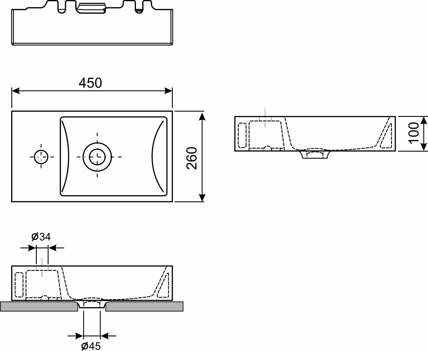 | Диаметр сливного отверстия | 45 мм |