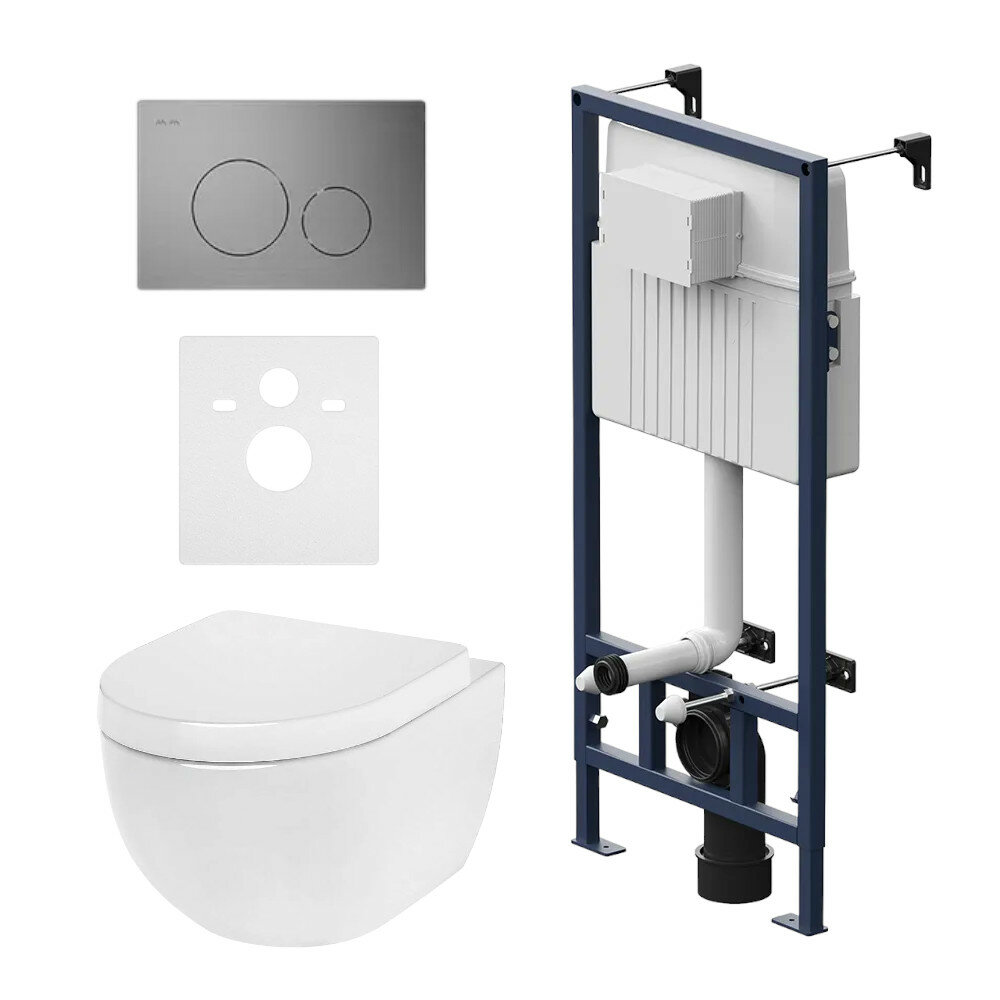 Инсталляция с подвесным унитазом AM.PM Awe пневм. кнопка Pro L глянцевый хром, сиденье с микролифтом, шумоизоляция
