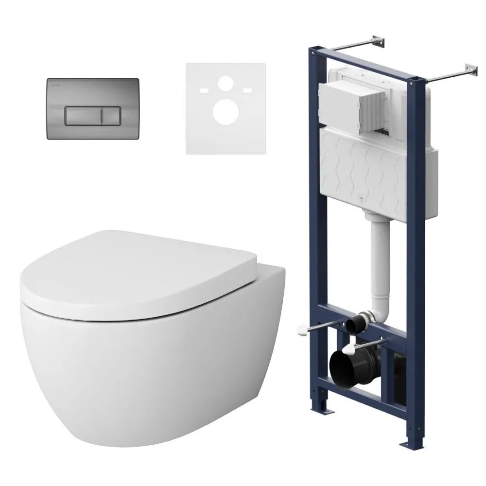 Инсталляция с подвесным унитазом AM.PM Awe пневм. кнопка Pro L глянцевый хром, сиденье с микролифтом, шумоизоляция