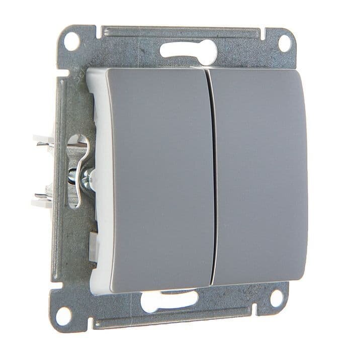 Выключатель электрический Systeme Electric Atlas Design 2-клавишный, 10А, 10 AX, Алюминий ATN000351 -10 шт.