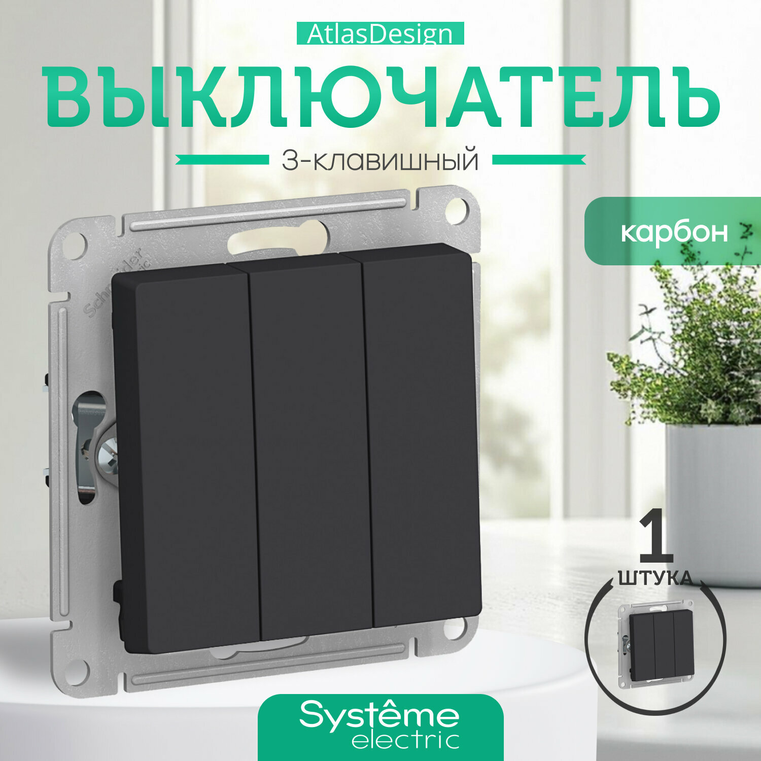 СохранитьТрёхклавишный выключатель Schneider Atlas Design (Карбон) интересное: