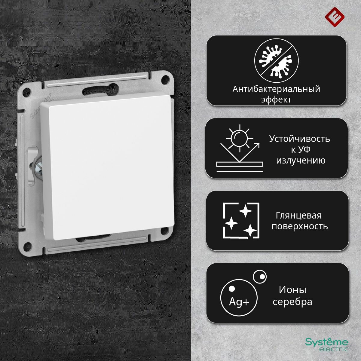 Выключатель Systeme Electric / Систем Электрик AtlasDesign, 10АХ схема 1, белый одноклавишный, ATN000111 / переключатель