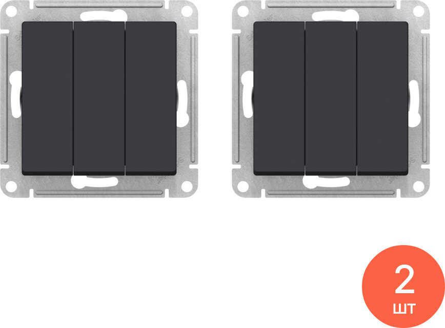 Купить Выключатель Systeme Electric / Систем Электрик AtlasDesign, 10АХ схема 1+1+1, карбон трехклавишный, ATN001031 / переключатель (комплект из 2 шт)