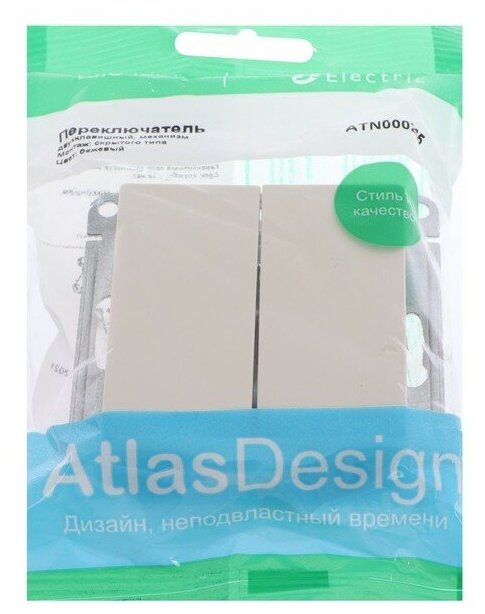 Купить Механизм выключателя (переключатель проходной) Schneider Electric AtlasDesign, 2 клавиши, бежевый
