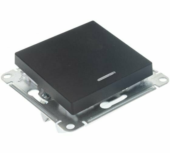 Купить Выключатель 1-клавишный с подсветкой Systeme Electric/Schneider Electric AtlasDesign 10А скрытой установки карбон ATN001013