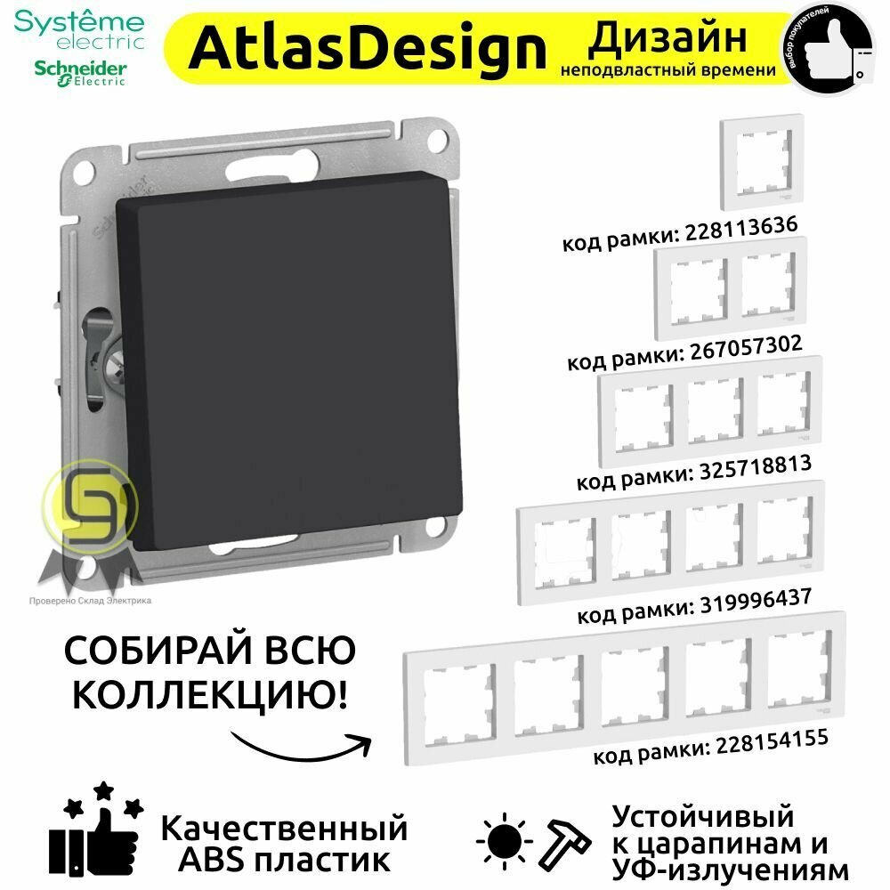 СохранитьВыключатель проходной одинарный 2 шт Schneider Electric/Systeme Electric AtlasDesign 1 клавиша переключатель встраиваемый шнайдер 10А карбон ATN001061 интересное: