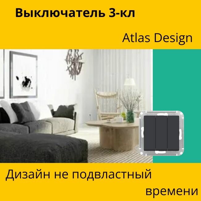 СохранитьВыключатель 3-клавишный ATLASDESIGN, скрытый монтаж, карбон. ATN001031 Schneider Electric интересное:
