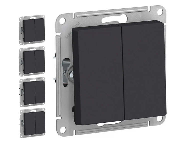 Выключатель электрический Systeme Electric Atlas Design 2-клавишный, 10А, 10 AX, Карбон ATN001051 - 5 шт.