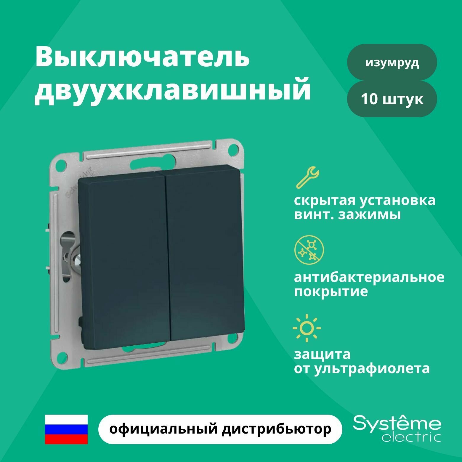 Выключатель электрический Systeme Electric Atlas Design 2-клавишный, 10А, 10 AX, Изумруд ATN000851 - 10 шт.