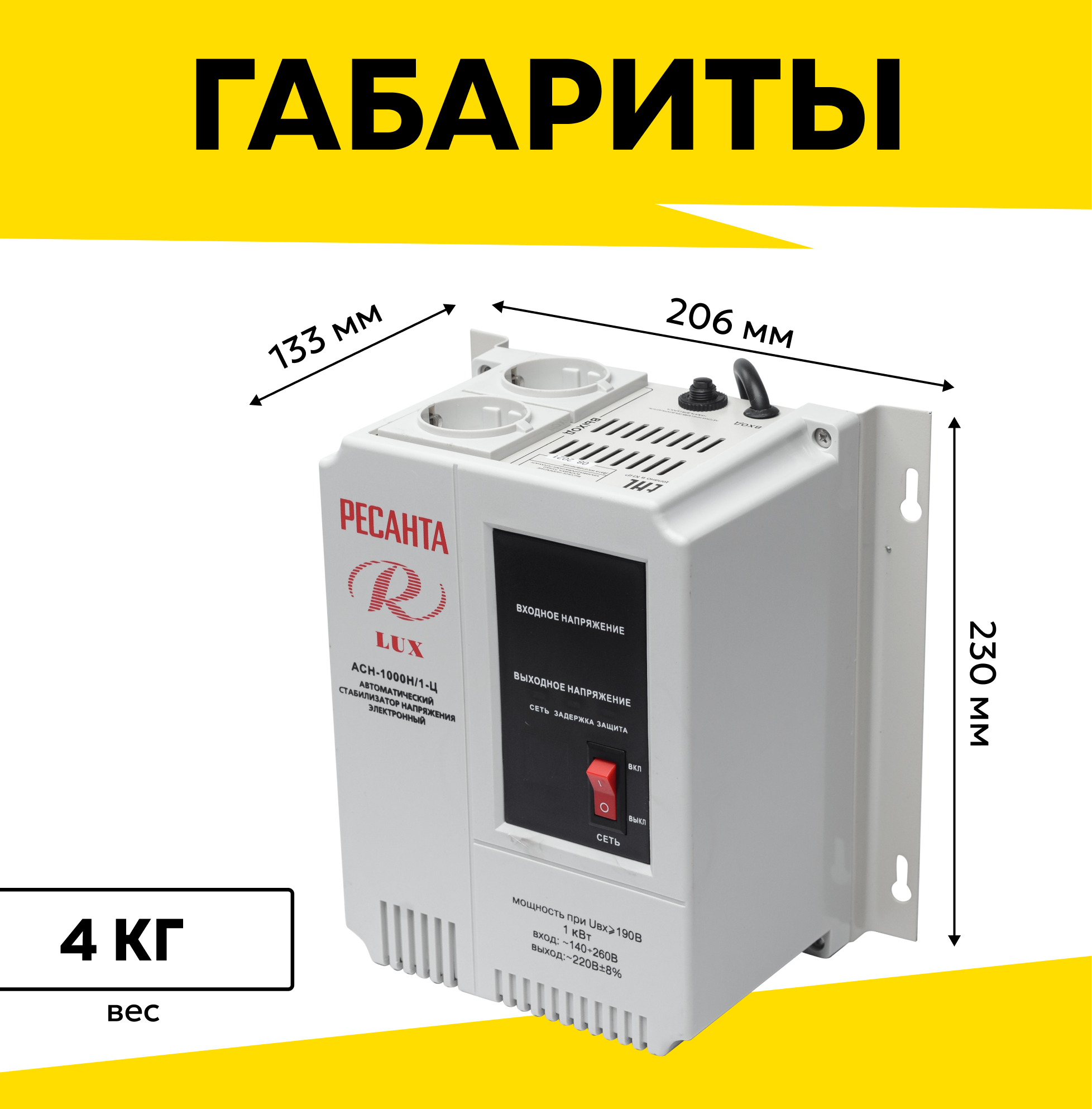 Стабилизатор напряжения однофазный РЕСАНТА LUX АСН-1000Н/1-Ц (1 кВт)