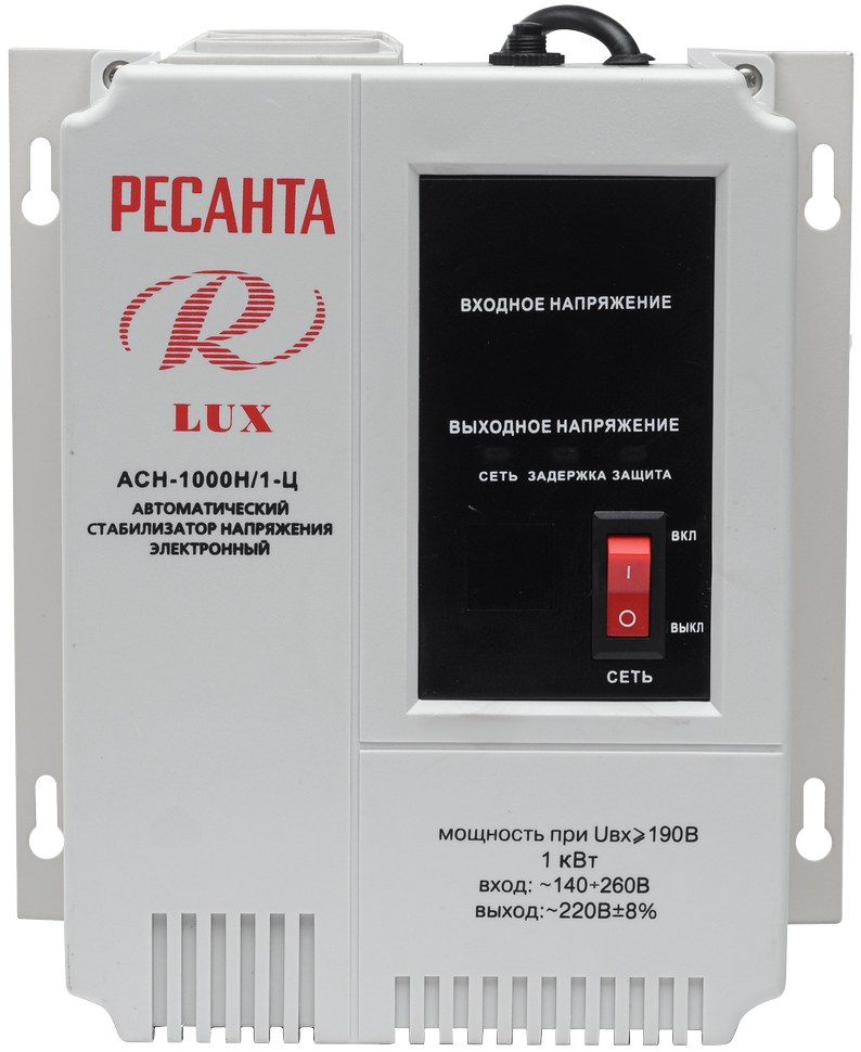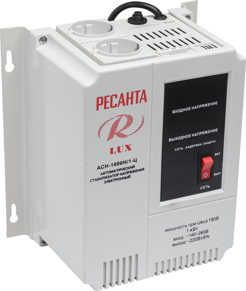 Стабилизатор напряжения Ресанта АСН-1000 Н/1-Ц Lux однофазный 220 В 0,83 кВА релейный навесной