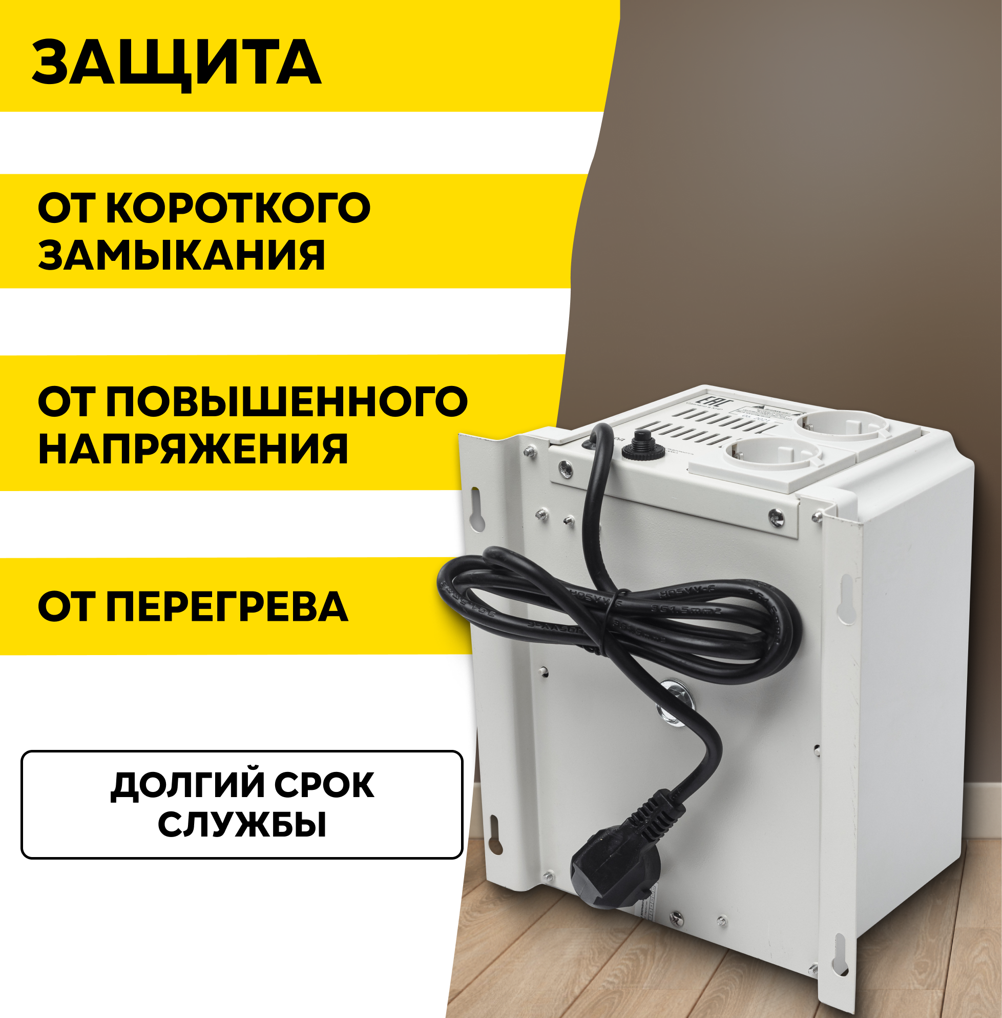 | Минусы: | Месяца два был запах из вентиляционной решетки. То и дело срабатывает защита. Стиральная машина с максимальной мощностью 1500Вт (под которую собственно и покупался стабилизатор) отключается. |