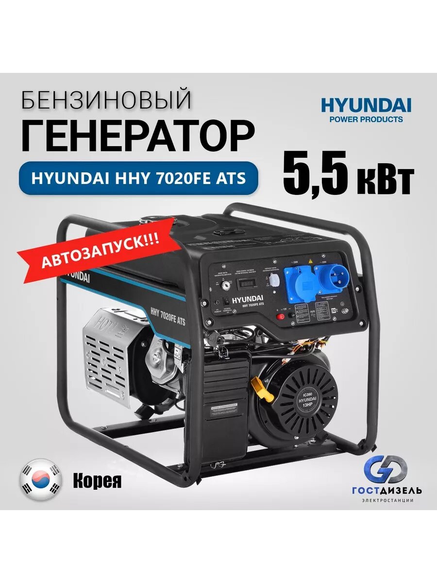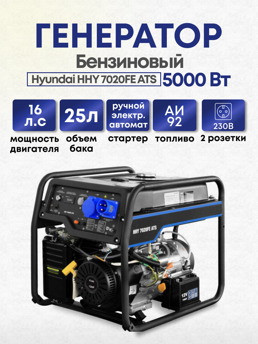 Бензиновый генератор Hyundai HHY 7020FE ATS (кВт 5.5, л.с 16)
