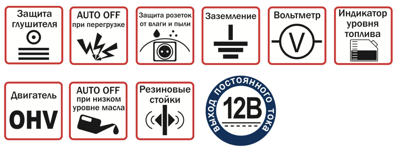 | Плюсы: | отличный генератор, не прожорлив, запускается без всяких проблем, несколько розеток |