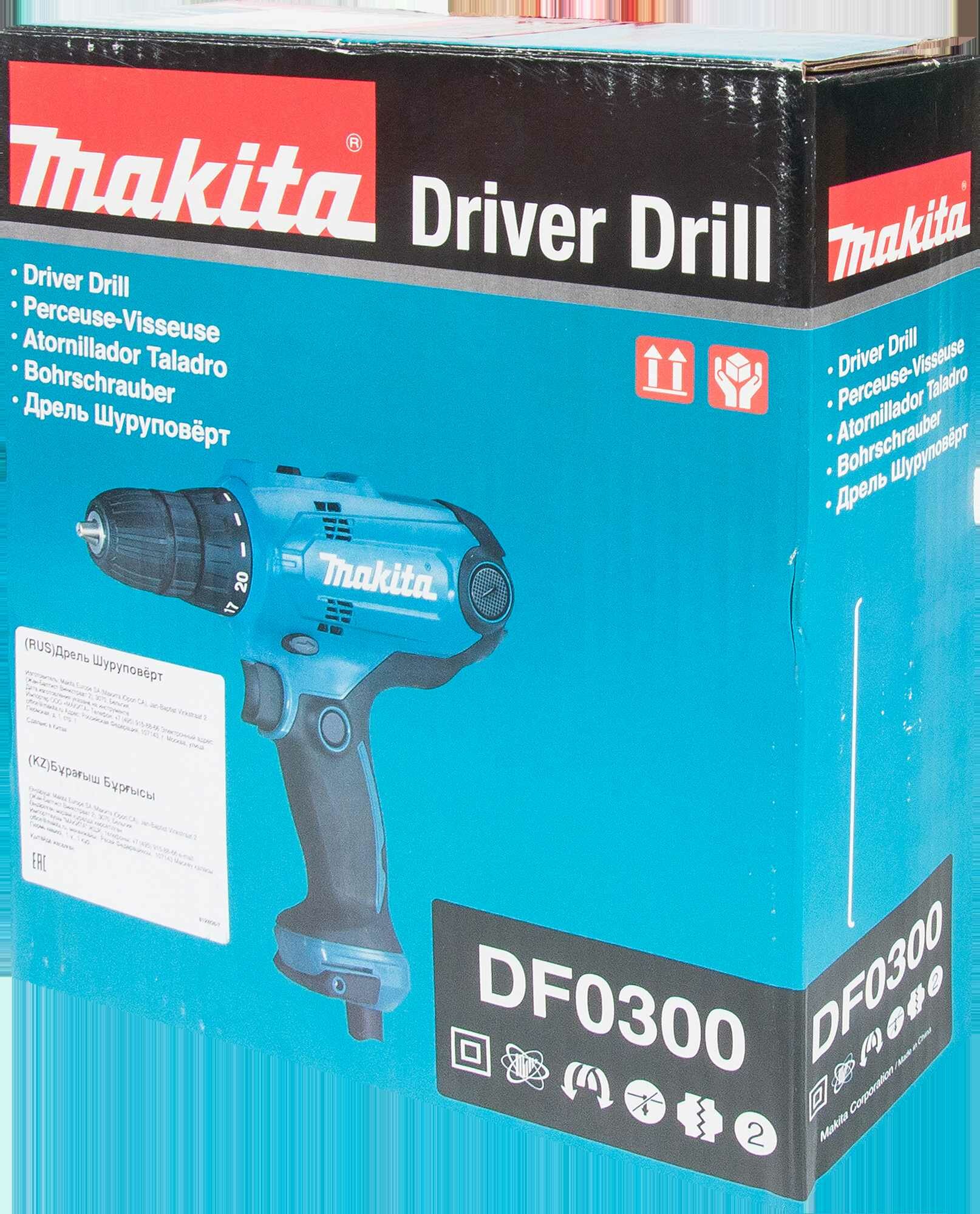 Купить Электрическая дрель-шуруповерт Makita DF0300, 2 скорости, быстрозажимной патрон, реверс, блокировка от случайного включения, от сети, синяя