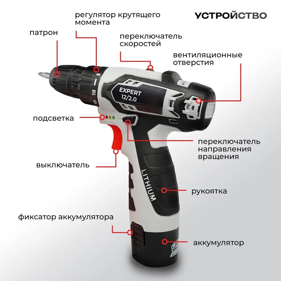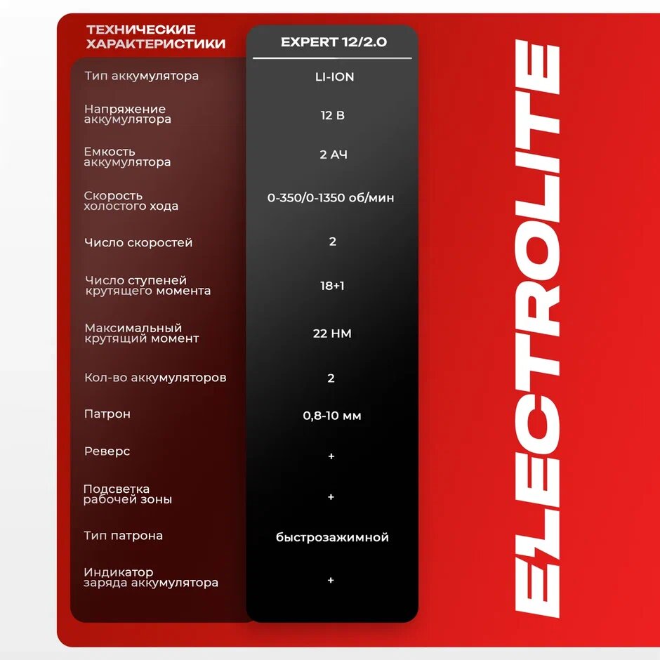 Аккумуляторный шуруповерт Electrolite Expert 12/2.0 (кейс, быстрозажимной патрон) интересное: