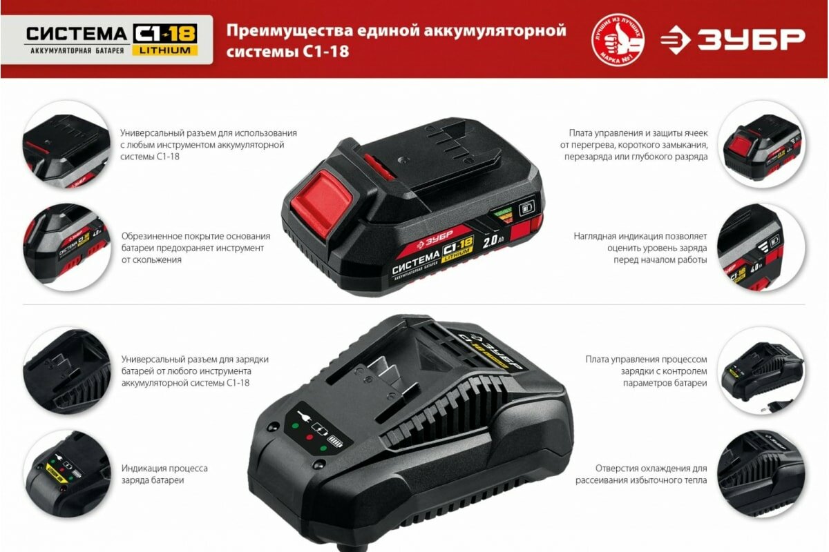 ЗУБР С1-18, 18 В, 250 Н·м, 2 АКБ (2 А·ч), винтоверт ударный, кейс (ГВЛ-255-22)