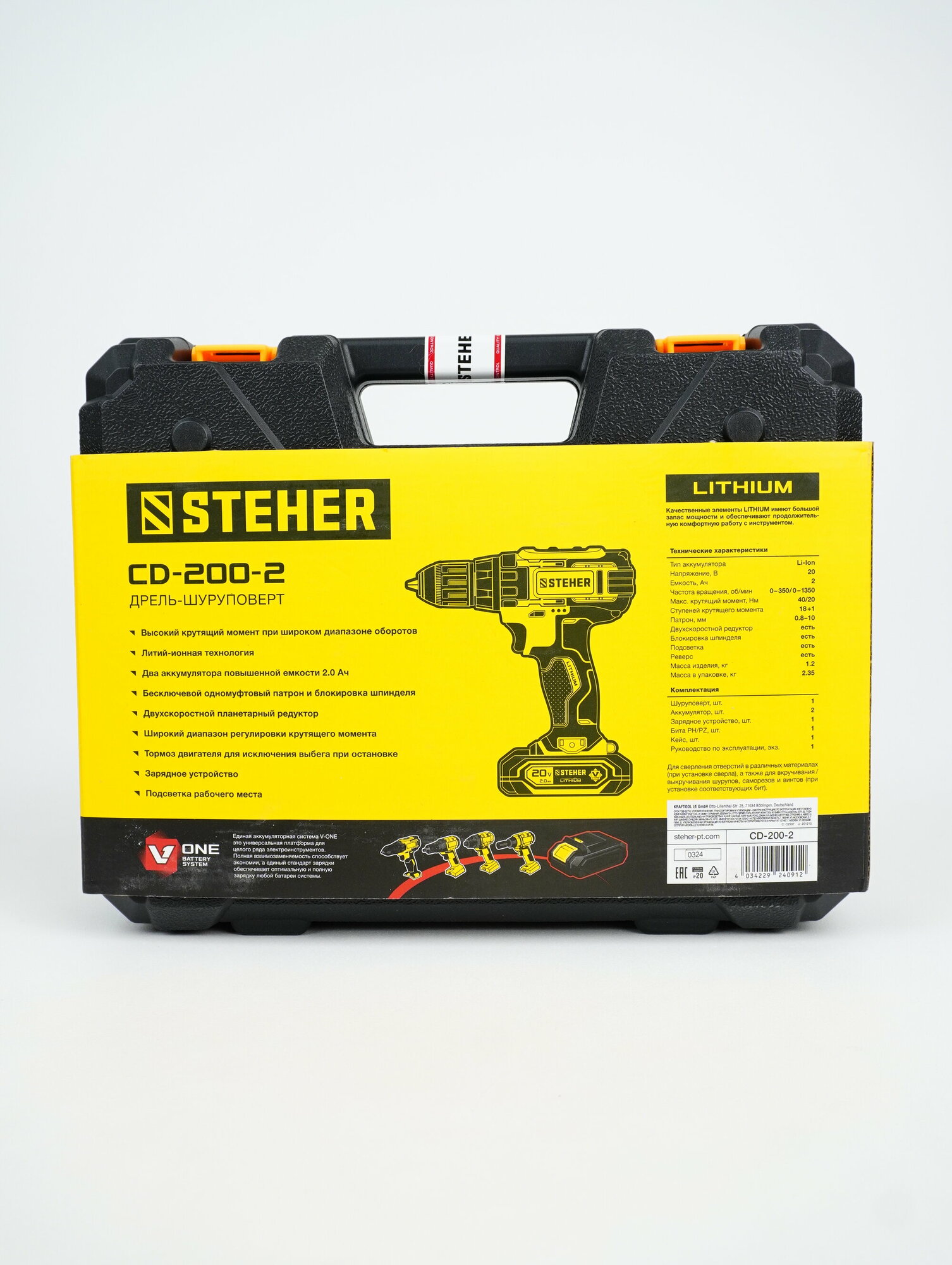 STEHER V1, 20 В, 40 Н·м, 2 АКБ (2 А·ч), дрель-шуруповерт, кейс (CD-200-2)