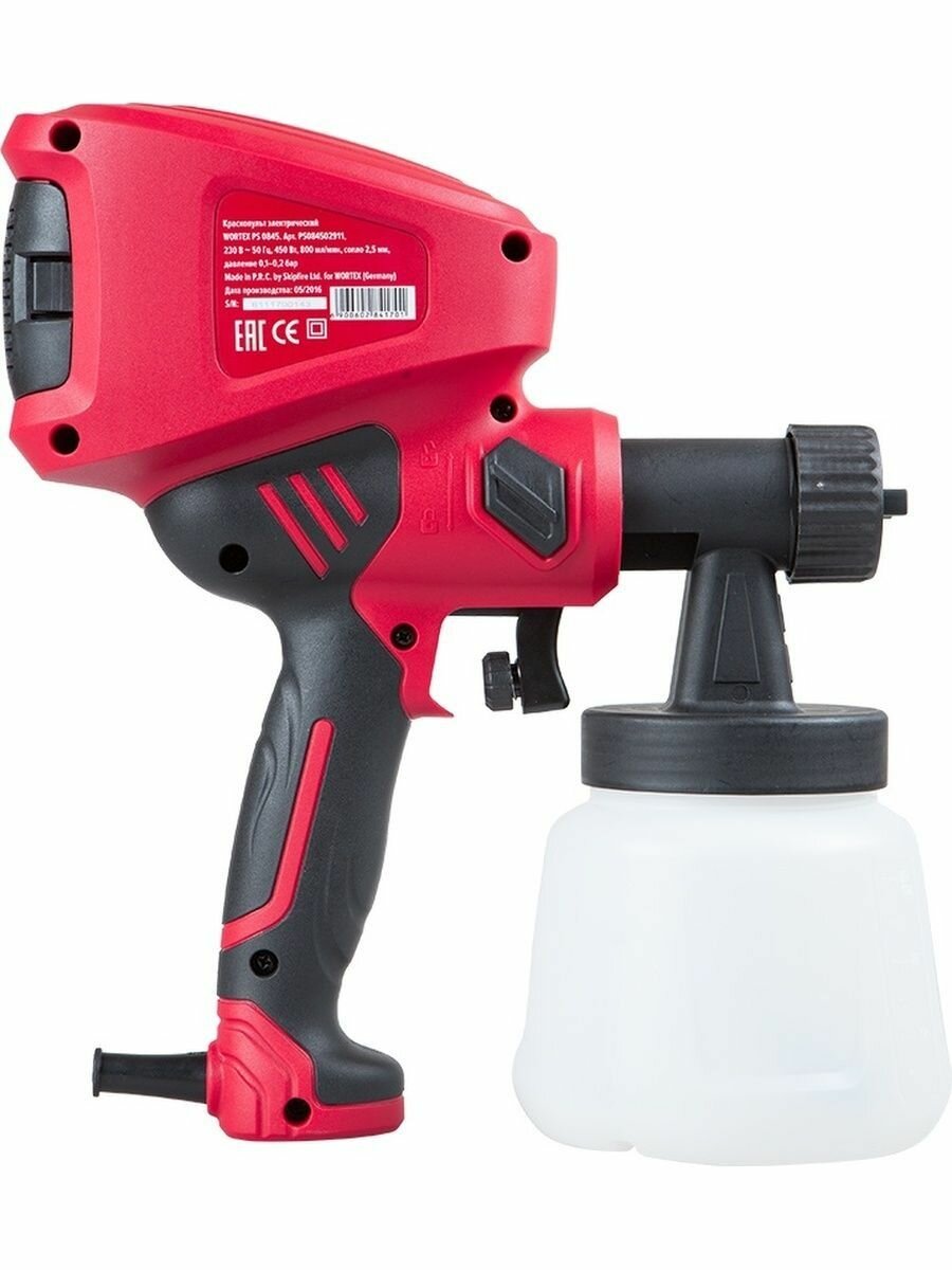 Купить Краскораспылитель электрический Wortex PS 0845 в кор., 450 Вт, 800 мл/мин, бак 0.9 л (PS084502911)