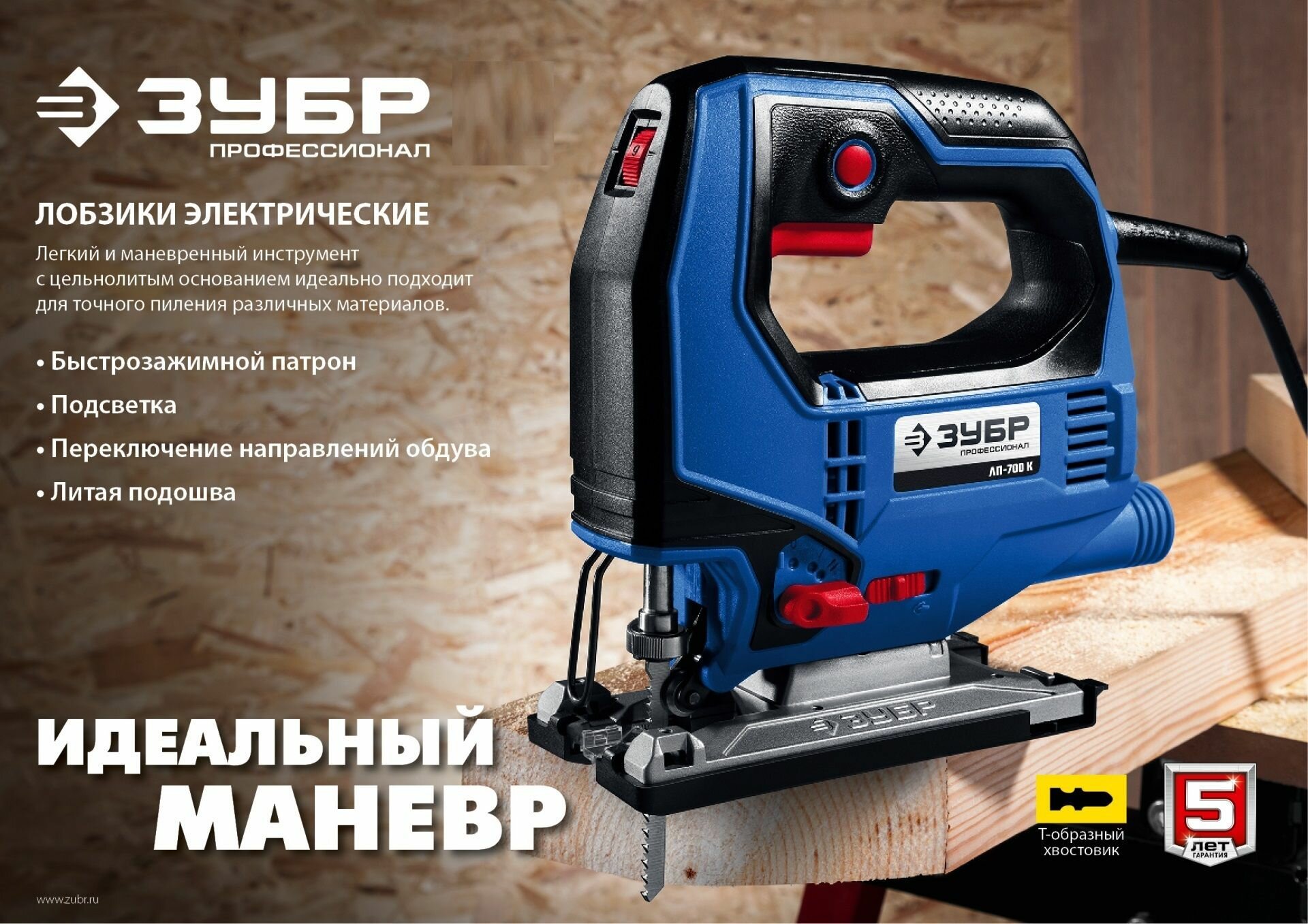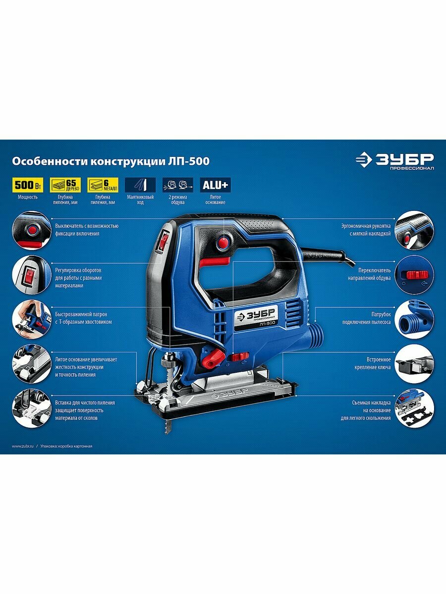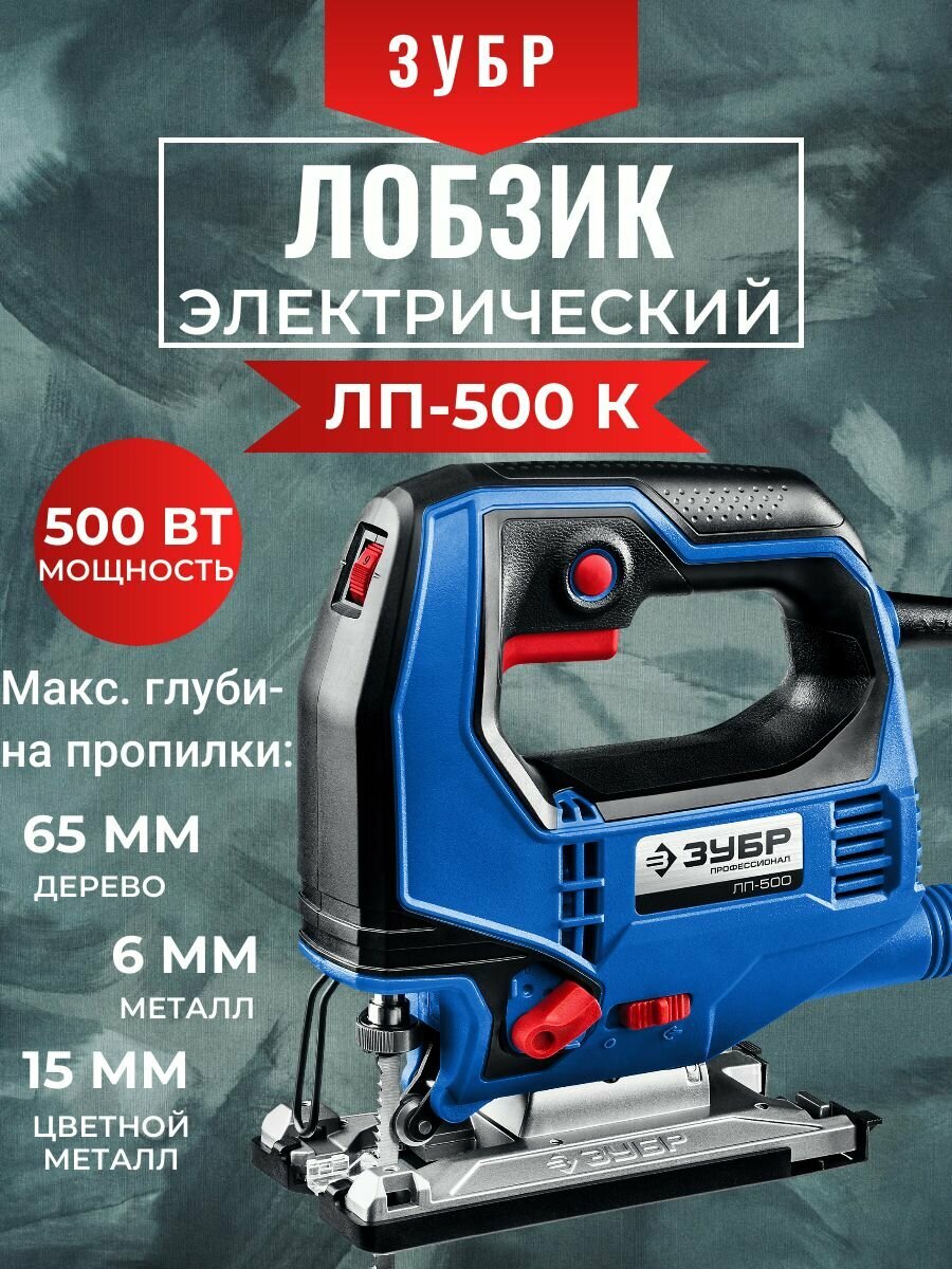 Электролобзик ЗУБР ЛП-500К, 500 Вт синий