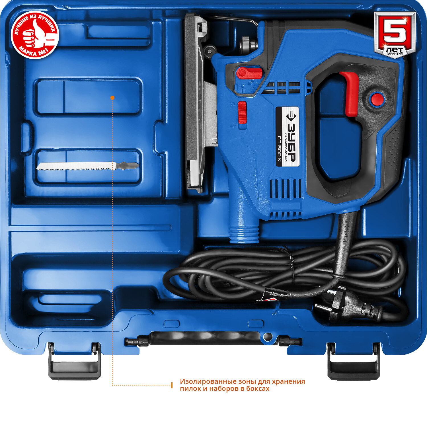 Лобзик Зубр ЛП-500 К +1пил. 500Вт 3000ходов/мин от электросети (кейс в комплекте)