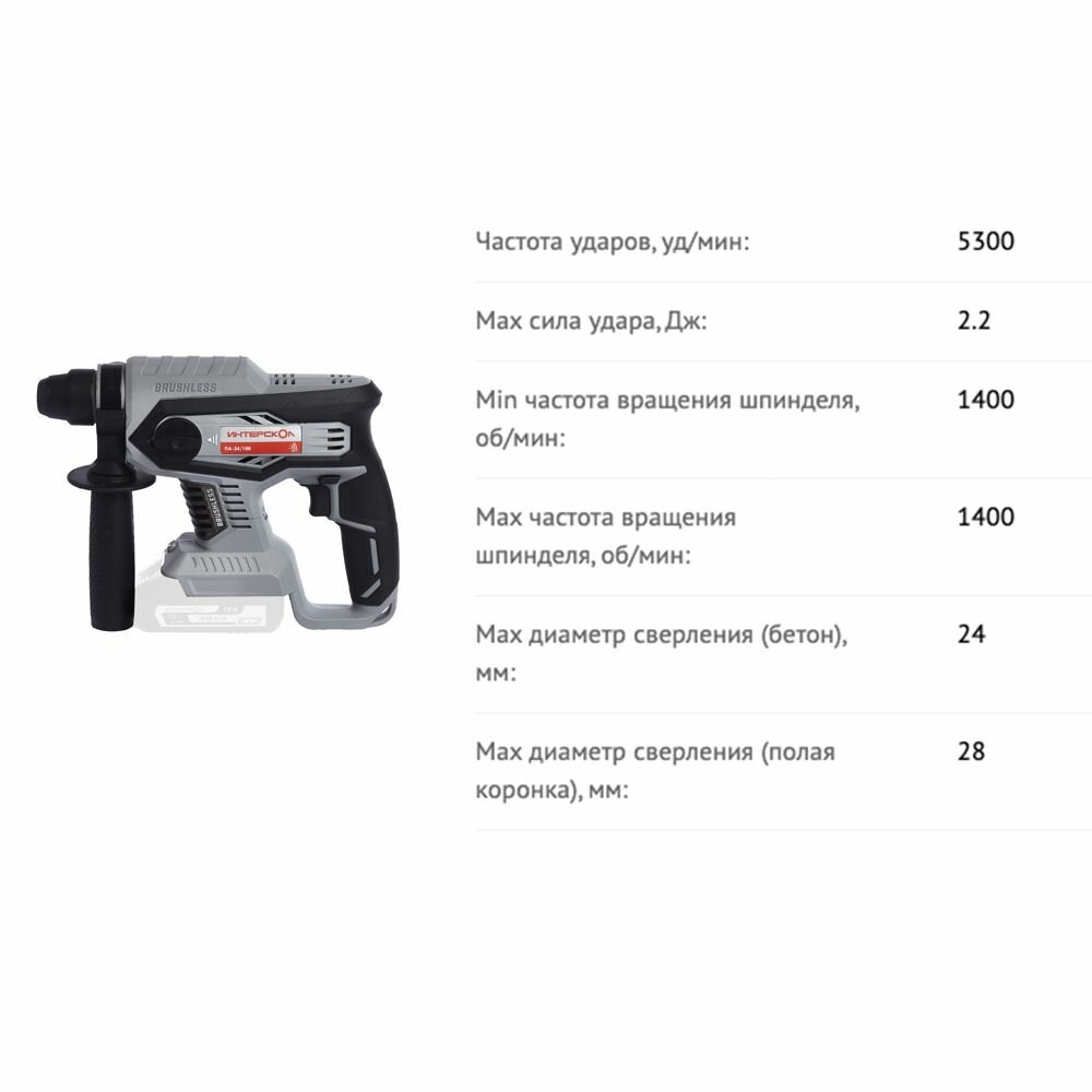 Аккумуляторный перфоратор ИНТЕРСКОЛ ПА-24/18В (без акк. и з.у)
