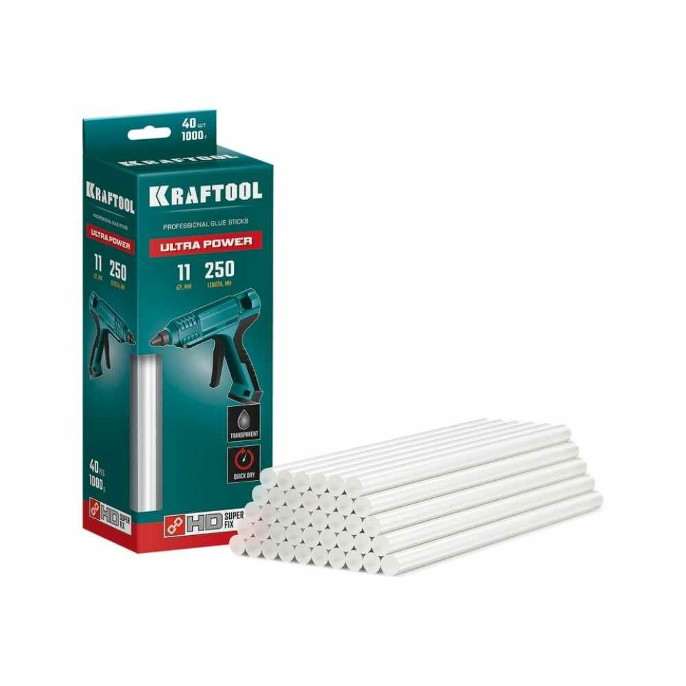 KRAFTOOL 40 шт., 1 кг, 11 x 250 мм (11-12 мм), прозрачные, ультрамощные клеевые стержни 06848-40