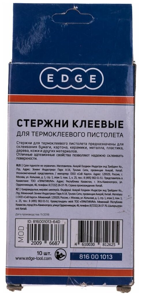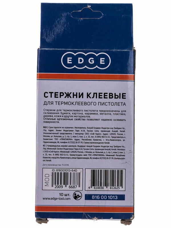 Стержни клеевые EDGE by PATRIOT 11*100мм белые, упаковка 10шт 816001013 PATRIOT интересное:
