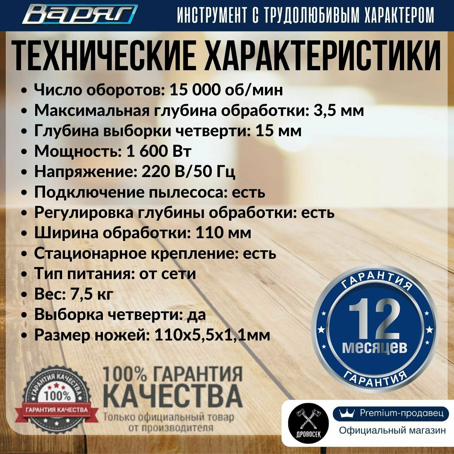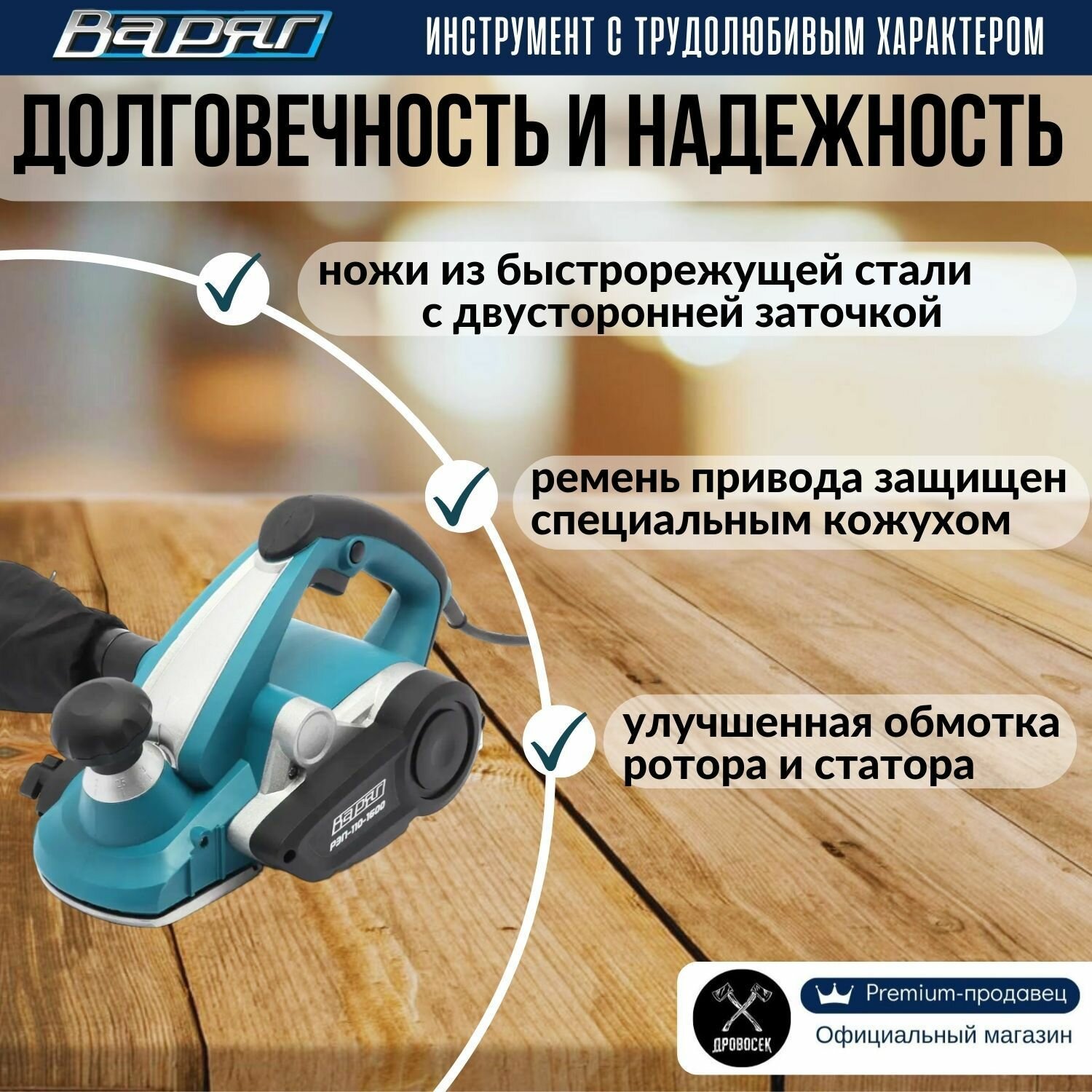 Рубанок Варяг 110мм, глубина строгания до 3,5мм, 1600 Вт интересное: