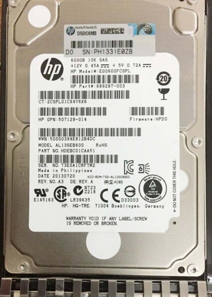 Hp 600GB 6G SAS 10K rpm SFF 2.5-inch Dual Port Enterprise Hard Drive 581286-B21 581311-001 B 507129-014 599476-003