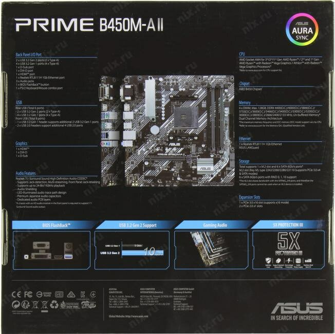 Материнская плата mATX ASUS PRIME B450M-A II (AM4,AMD B450,4*DDR4(3200),6*SATA 6G RAID,M.2,3*PCI-E,7.1CH,GLan,6*USB 3.1,D-Sub/DVI/HDMI) RTL