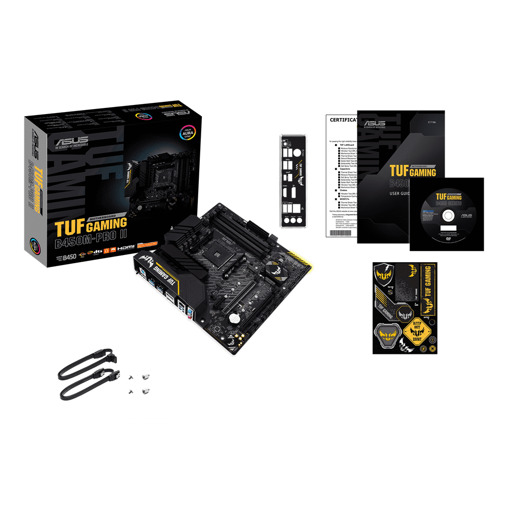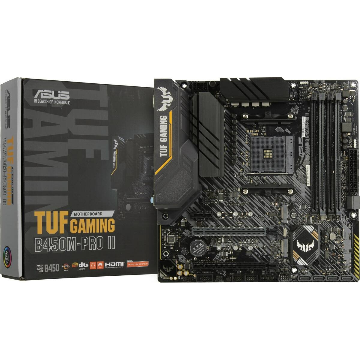 ASUS TUF GAMING B450M-PRO II, Socket AM4, B450, 4*DDR4, DVI+HDMI, CrossFireX, SATA3 + RAID, Audio, Gb LAN, USB 3.1*6, USB 2.0*6, COM*1 header (w/o cable), mATX ; 90MB1610-M0EAY0