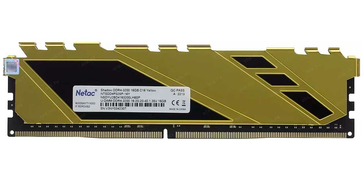 Оперативная память NETAC Shadow NTSDD4P32SP-16Y DDR4 - 1x 16ГБ 3200МГц, DIMM, Yellow, Ret