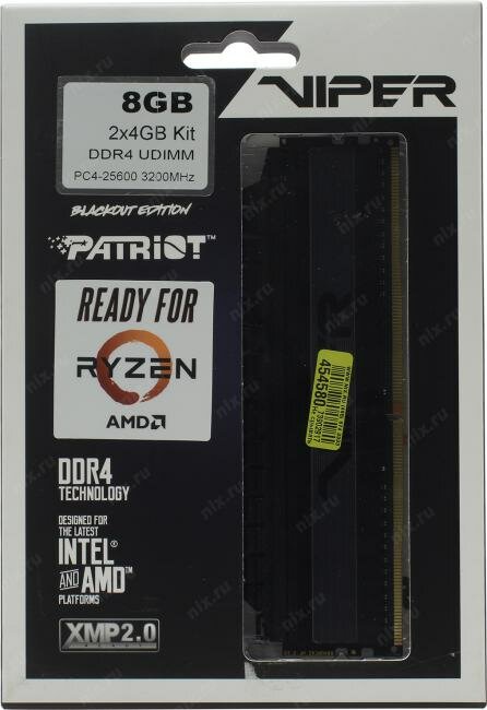 Patriot DDR4 8Gb (2x4Gb) 3200MHz pc-25600 Viper Blackout (pvb48g320c6k) Pvb48g320c6k .