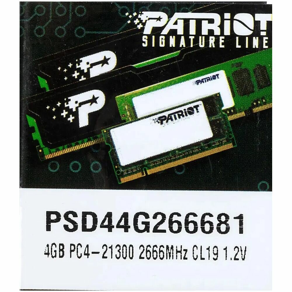 Модуль памяти Patriot Memory Signature DDR4 DIMM 2666MHz PC4-21330 CL19 - 4Gb PSD44G266681