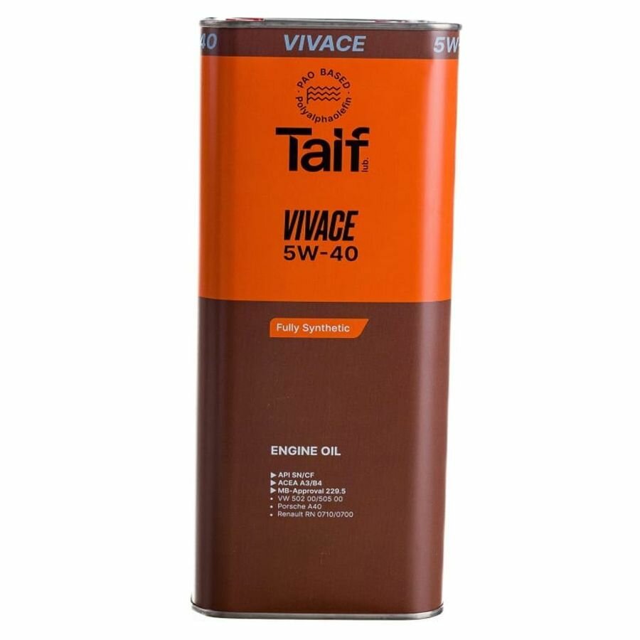 TAIF Lubricants Taif Масло Моторное Vivace 5w-40, 4l Api Sn/Cf, Mb- 229.5,Vw 502 00/505 00