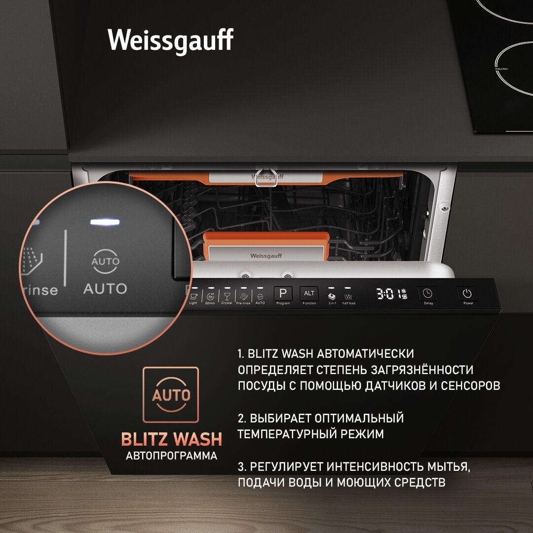 Встраиваемая посудомоечная машина Weissgauff BDW 4537, до 11 комплектов, таймер интересное: