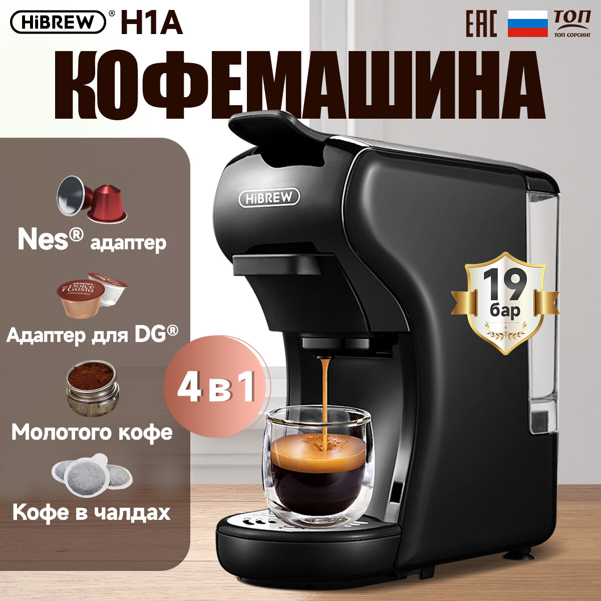 Капсульная кофемашина, Hibrew H1A черный(ЕАС-сертификат) совместимый Капсулы Nespresso