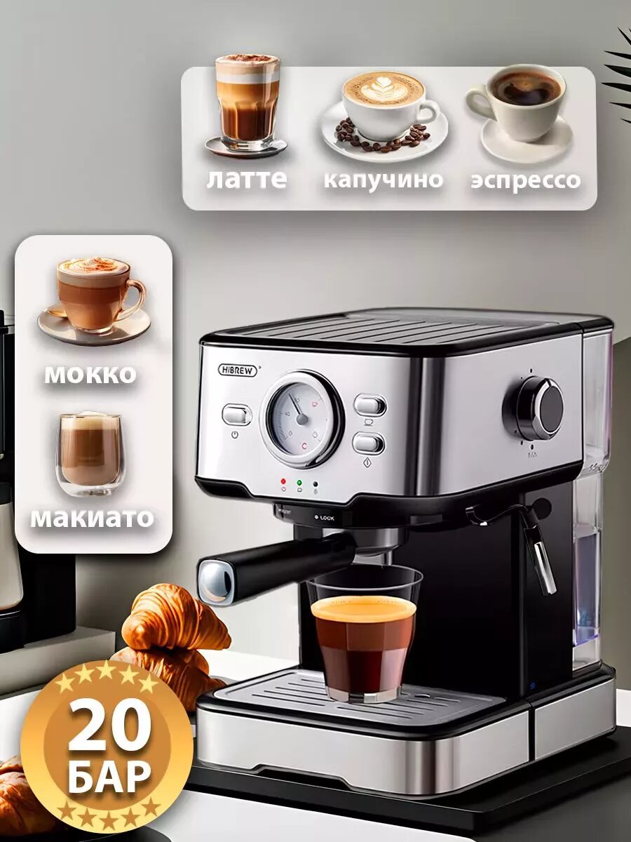 Полуавтоматическая кофемашина HiBREW H5(ЕАС-сертификат),20 бар, эспрессо, нержавеющая сталь