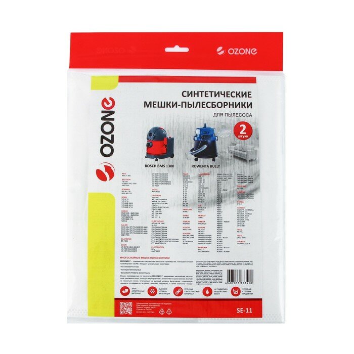 Мешки-пылесборники SE-11 Ozone синтетические для пылесоса, 2 шт