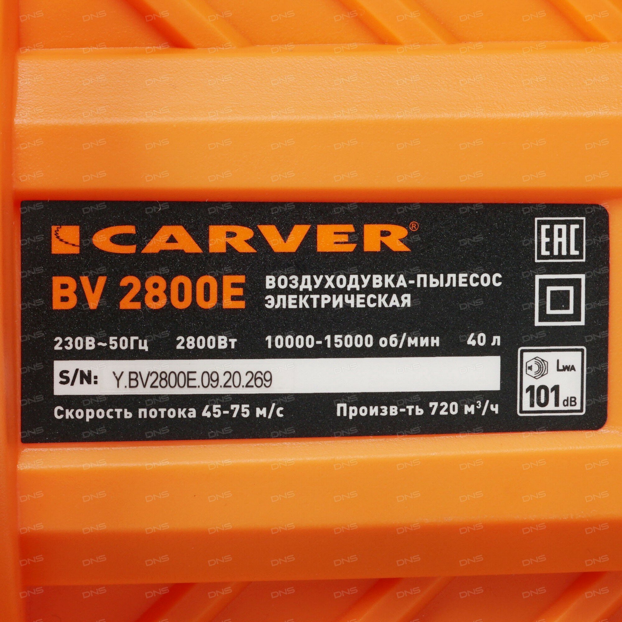 Воздуходувка-пылесос Carver BV 2800E 2800Вт пит.:от сети оранжевый/черный