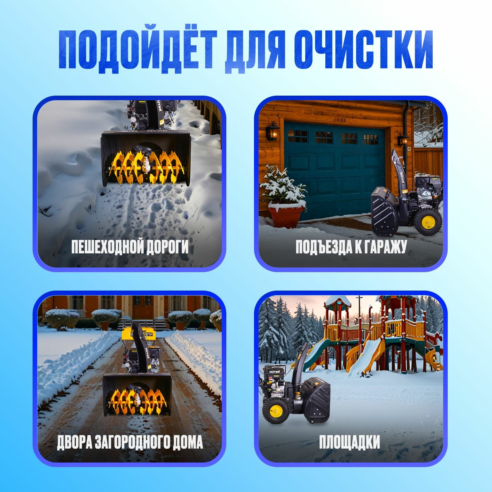Купил для большого дачного участка, за один проход 70 см по ширине сносит. Плотный снег не помеха. У колёс отличный протектор, нет скольжения. Удобно, что с фарой. Легко регулирую направление выброса.