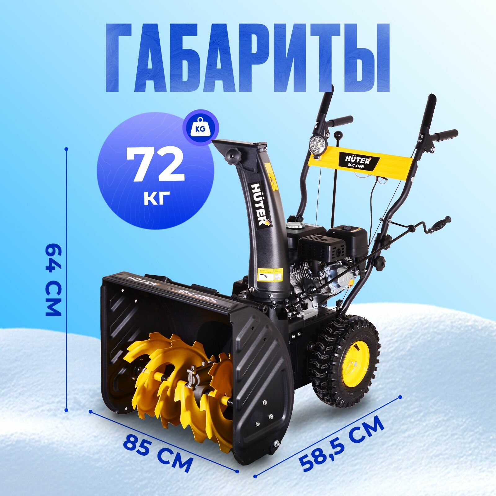 Снегоуборщик бензиновый Huter SGC 4100L (7 л.с. выброс- 15 м., ковш 56 х 54 см, самоходный) интересное: