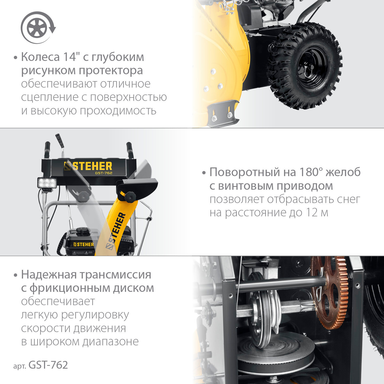 Машина снегоуборочная GST-762 STEHER