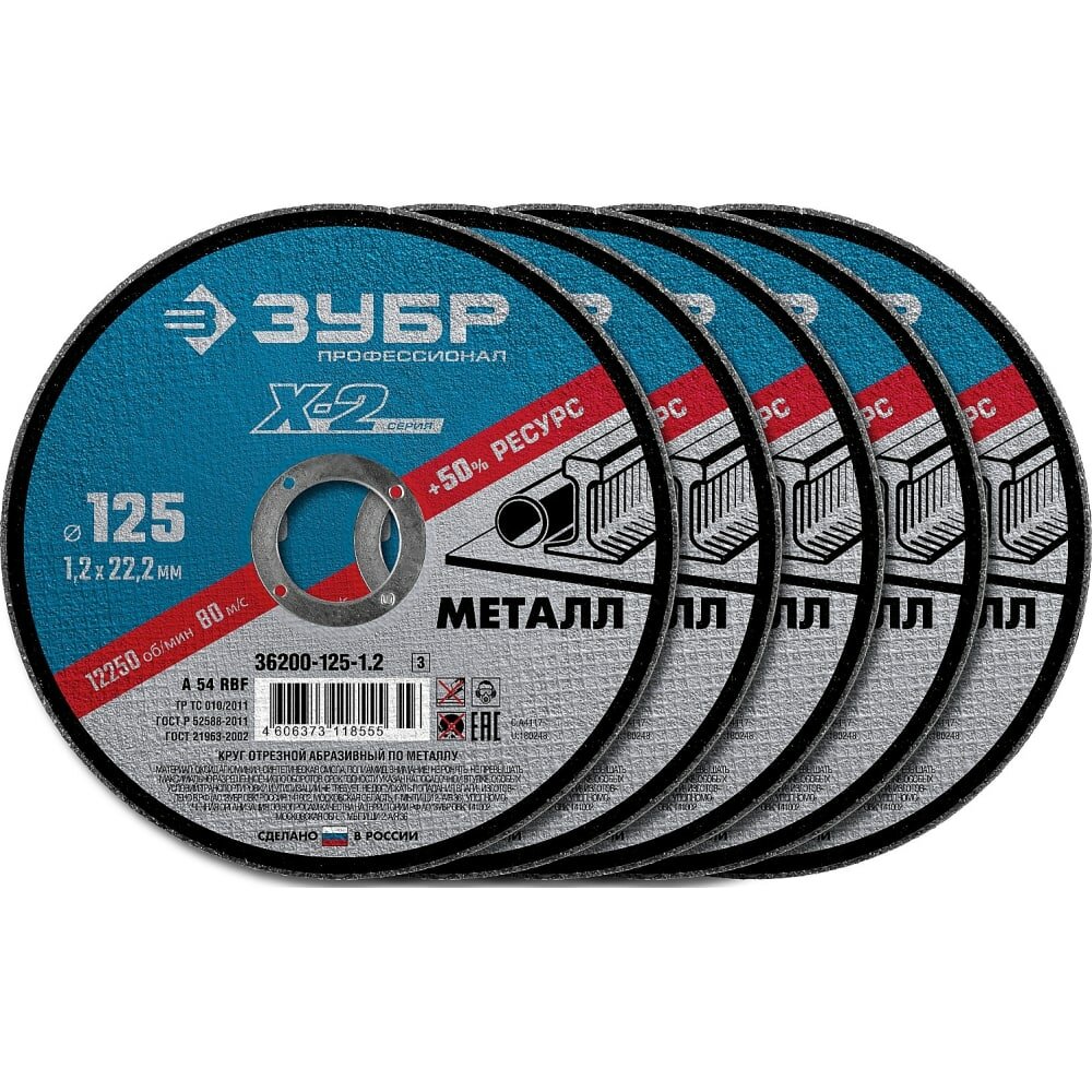 Купить 1шт_Круги отрезные "X-2" по металлу 125х1,2х22мм, ЗУБР (в упаковке 5шт)