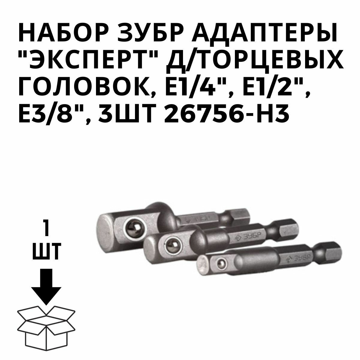 ЗУБР Набор ЗУБР Адаптеры "эксперт" для торцовых головок, E1/4" - 1/4", E1/4" - 3/8", E1/4" - 1/2", 3 пред