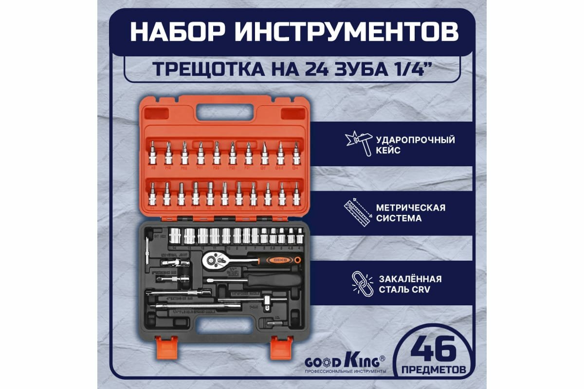 GOODKING Набор инструментов 46 предметов 1/4 трещотка K-10046