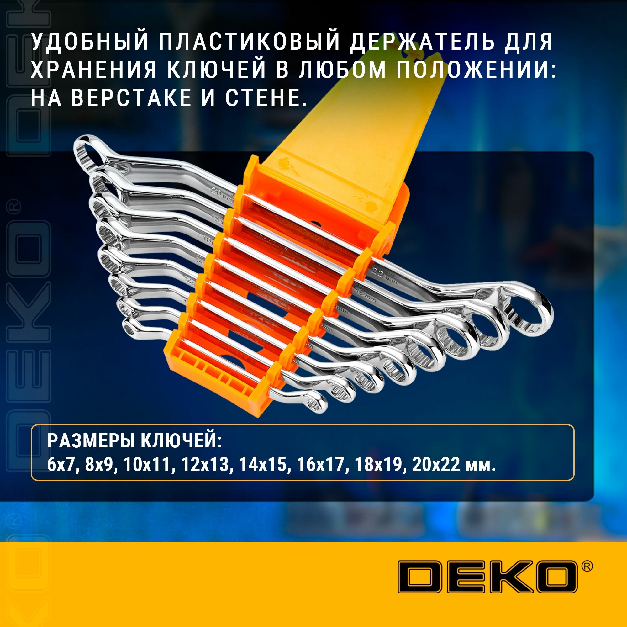 СохранитьНабор накидных ключей DEKO DKHT08, 8 штук, с пластиковым держателем интересное: