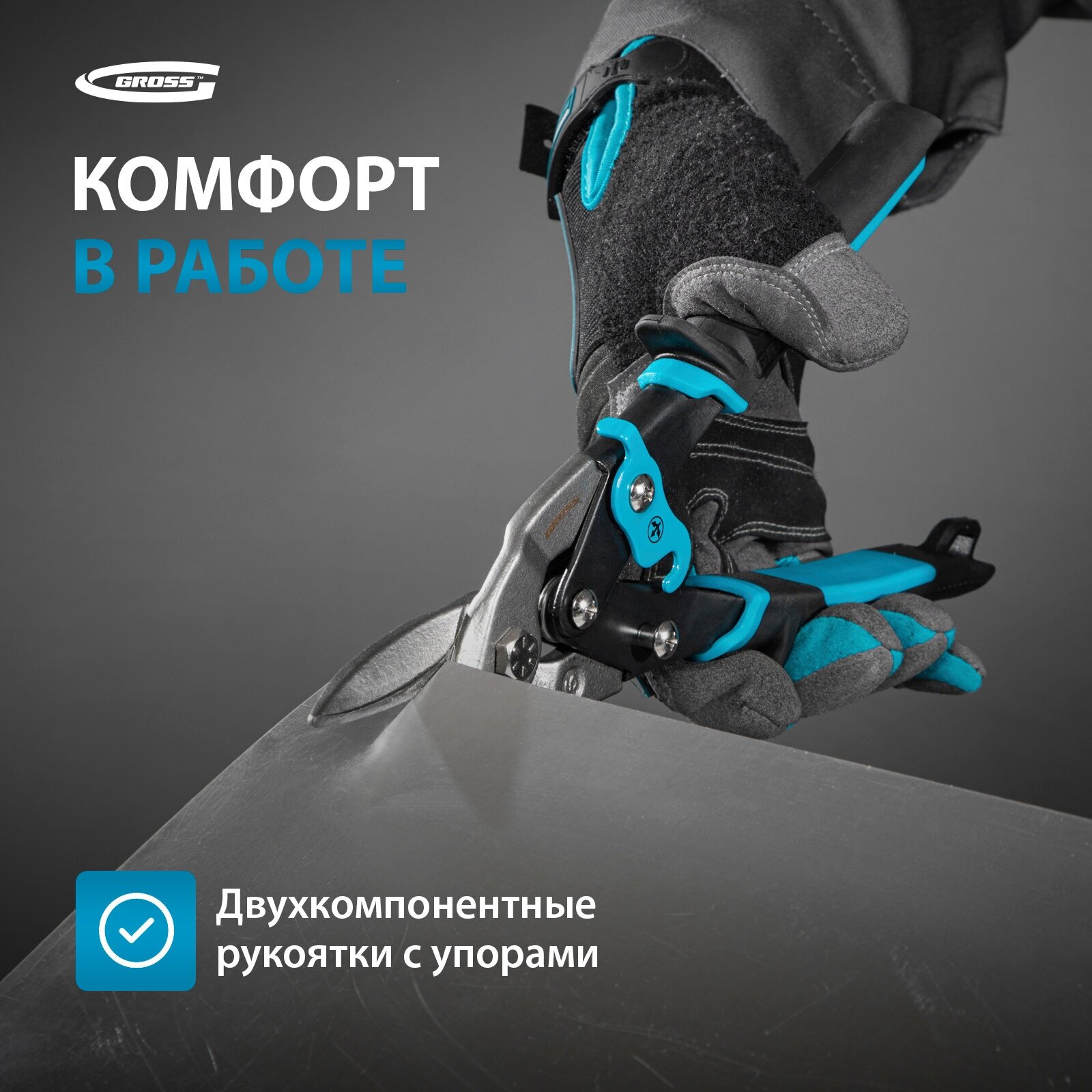 Ножницы по металлу 250мм прямой резки, двухкомп. рукоятки GROSS